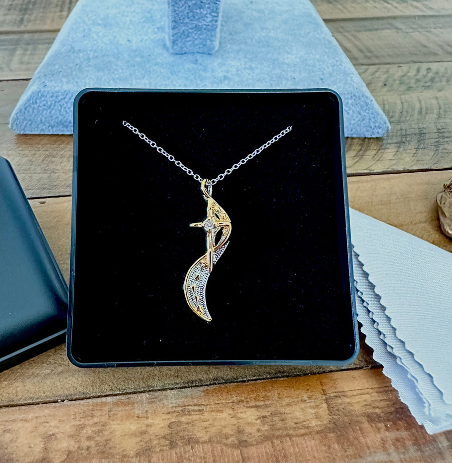 Pendant: 3.3cm x 1.3cm Yellow Gold Tone & Rhodium over Silver