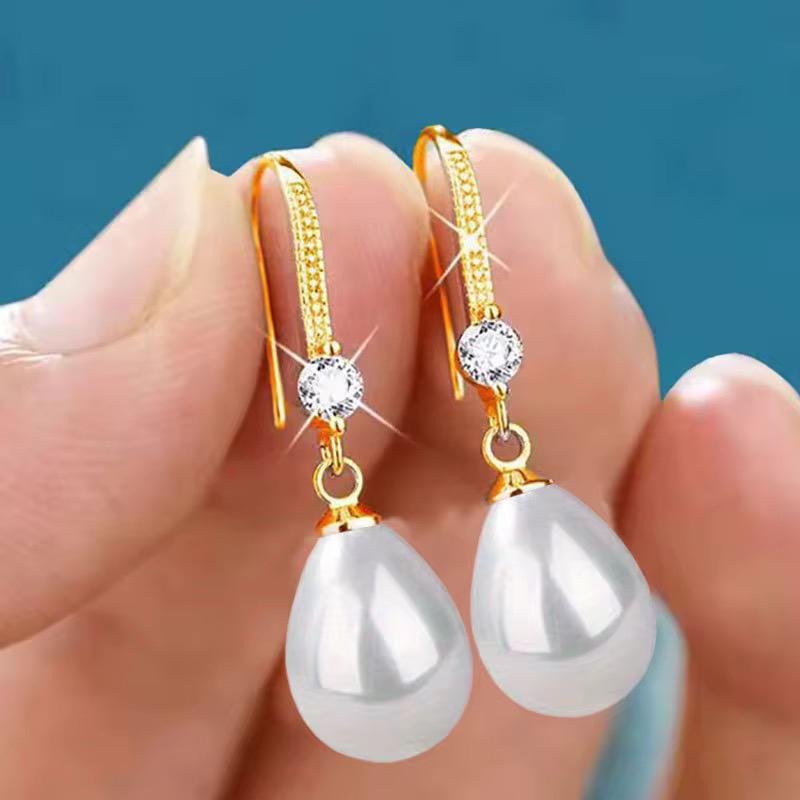 The earrings feature a crystal and pearl water droplet design. This elegant design adds a touch of sophistication to any outfit. Whether you prefer Gold or Silver, these earrings are a versatile addition to