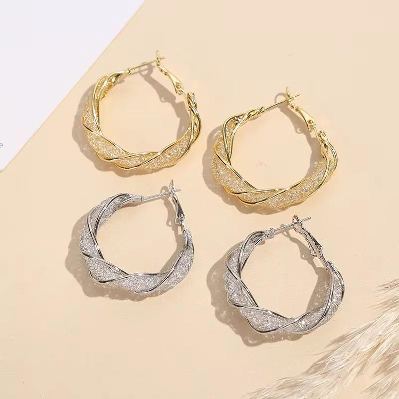 ✨ Elegant Design: These Twisted Mesh Hoop Crystal Earrings come in gold or